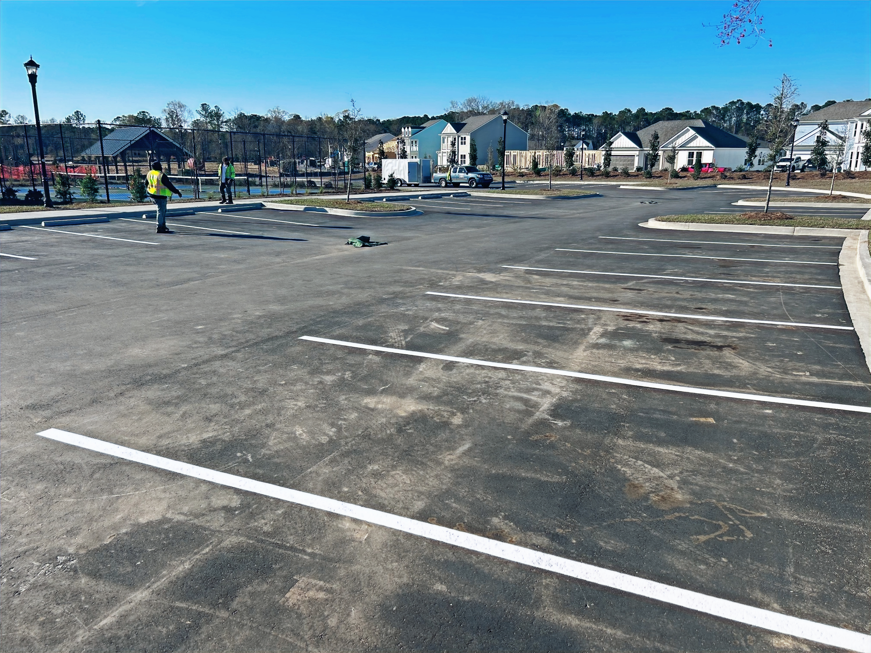 - Ensures ADA compliance with accessible parking spaces and stencils.